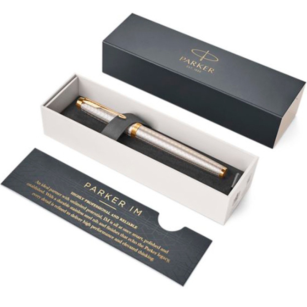 Модель 2017 года, перьевая ручка Parker IM Premium Warm Silver GT («Паркер Ай Эм Премиум Ворм Сильвер Джи Ти») из обновленной коллекции IM. Основные особенности нового дизайна: новый зажим-стрела с тремя широкими перьями, укороченная форма торца на колпачке, широкое кольцо на колпачке теперь состоит из 3 соединенных вместе колец, на среднем выполнена гравировка логотипа PARKER. Корпус перьевой ручки выполнен из серебристого матового анодированного алюминия, прошедшего пескоструйную обработку, с гравировкой в виде стильного графического орнамента. Отдельные детали дизайна из латуни и алюминия покрыты золотом. Перьевая ручка оснащается пером из нержавещей стали в новой привлекательной форме. Ручка поставляется в престижной подарочной коробке с обновленным дизайном, в комплекте также присутствует один пробный картридж и гарантийный талон.