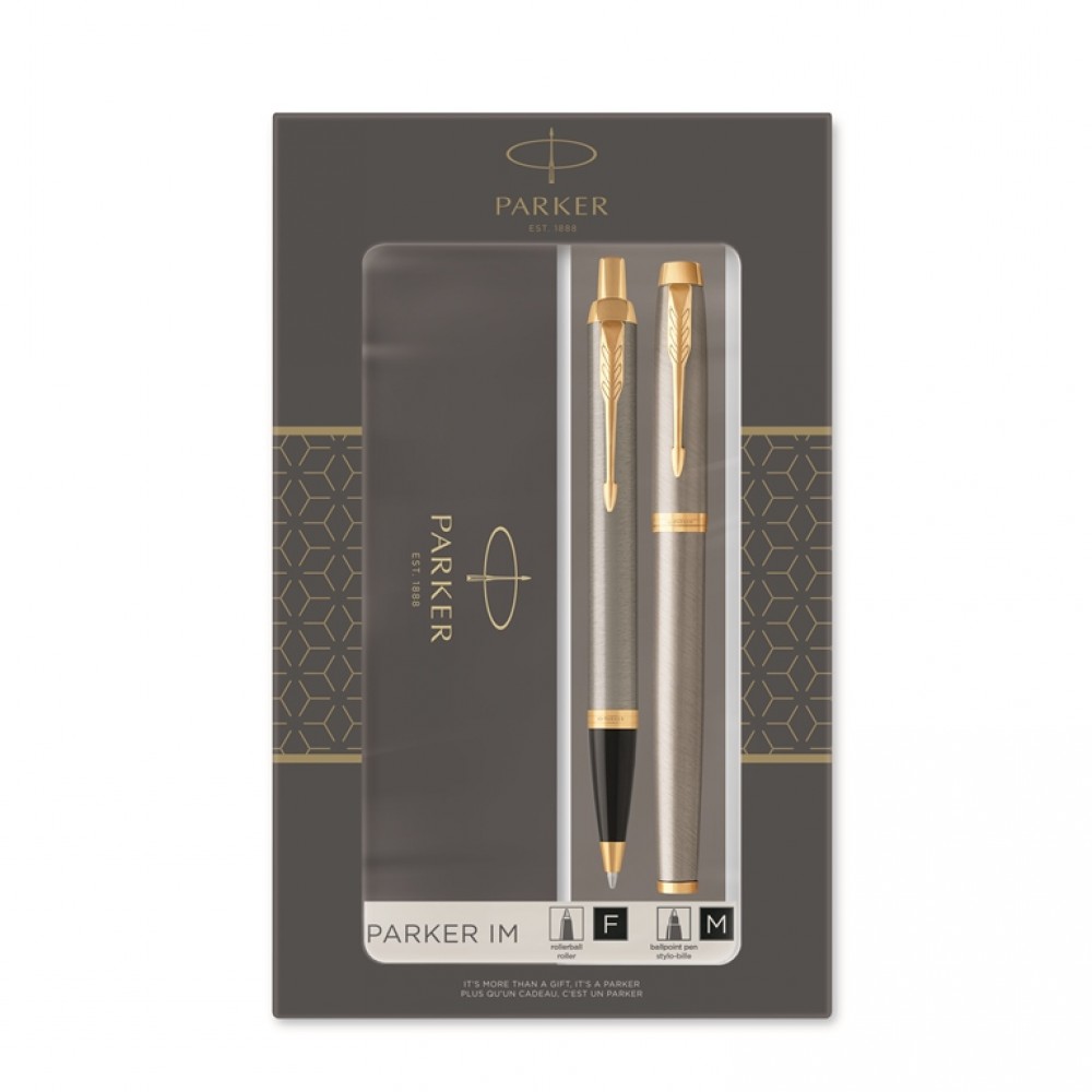Набор подарочный Parker IM Core - Brushed Metal GT, ручка роллер+ручка шариковая