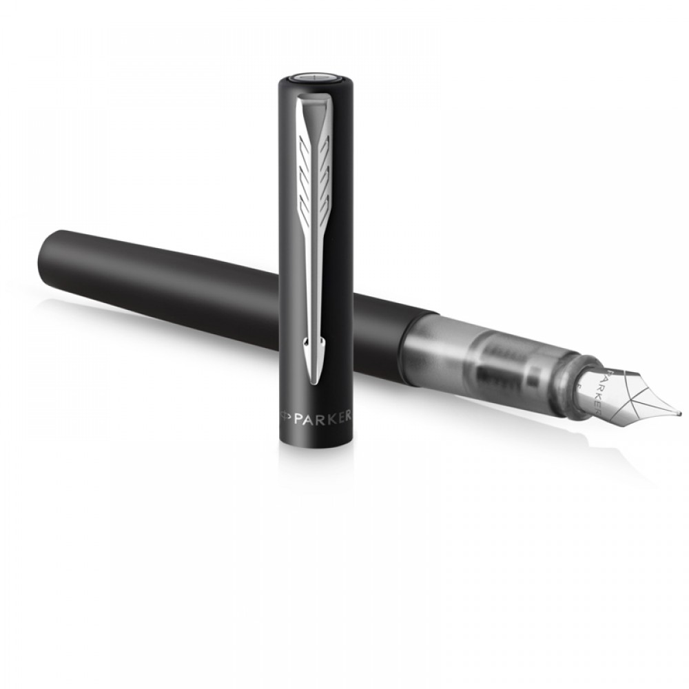 Ручка перьевая Parker "Vector XL Black" в подарочной упаковке - ручка из новой коллекции Parker Vector XL. Корпус ручки изготовлен из нержавеющей стали покрытой матовым лаком металлик. Зона захвата сделана из прозрачного пластика в цвет корпуса. На колпачке ручки выгравирован логотип Parker. Эмблема Parker также нанесена на торец колпачка. Размер корпуса ручки больше на 10% ручек прошлых серий Vector.